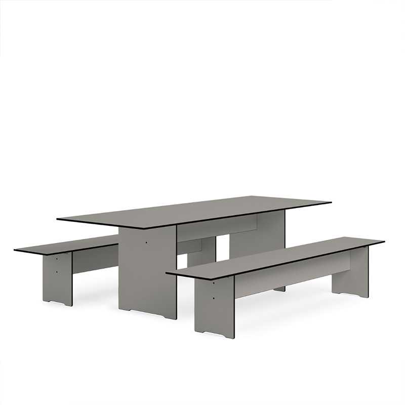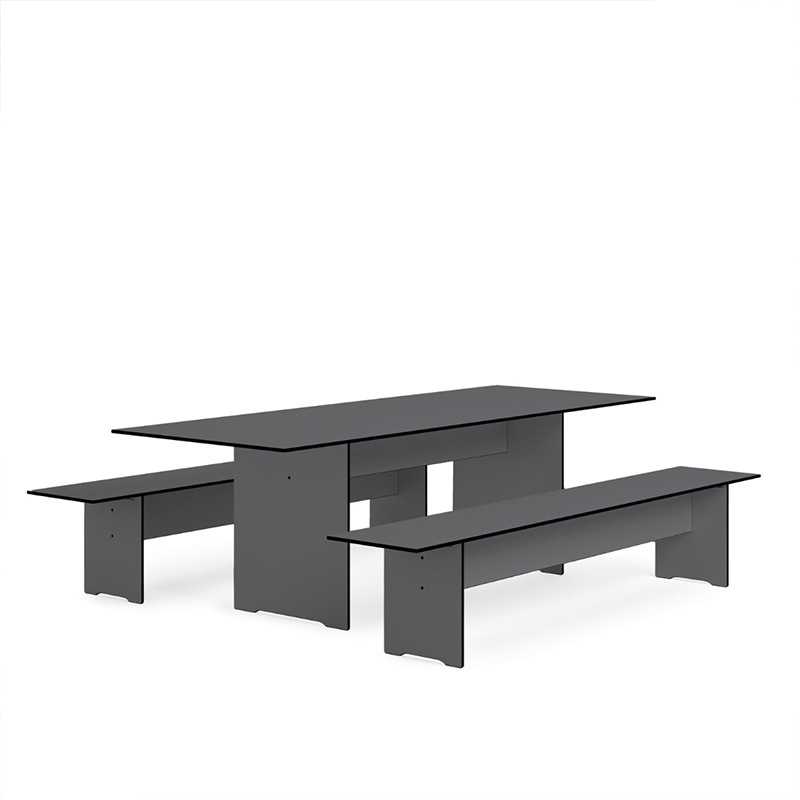 Gestell & Tischplatte aus wetterbeständigem HPL mit schwarzen Kanten