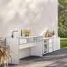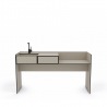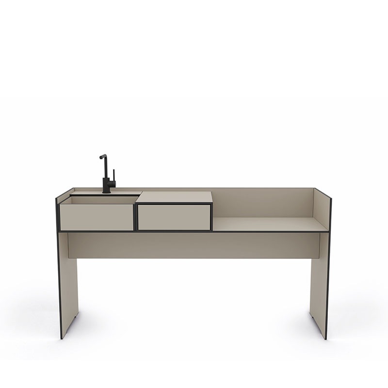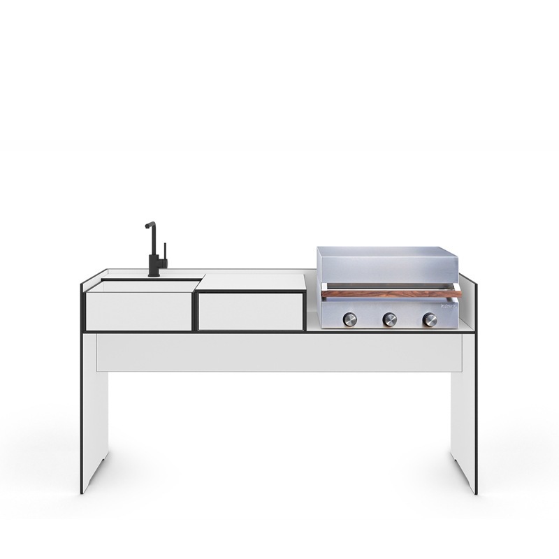 Gestell & Tischplatte aus wetterbeständigem HPL mit schwarzen Kanten