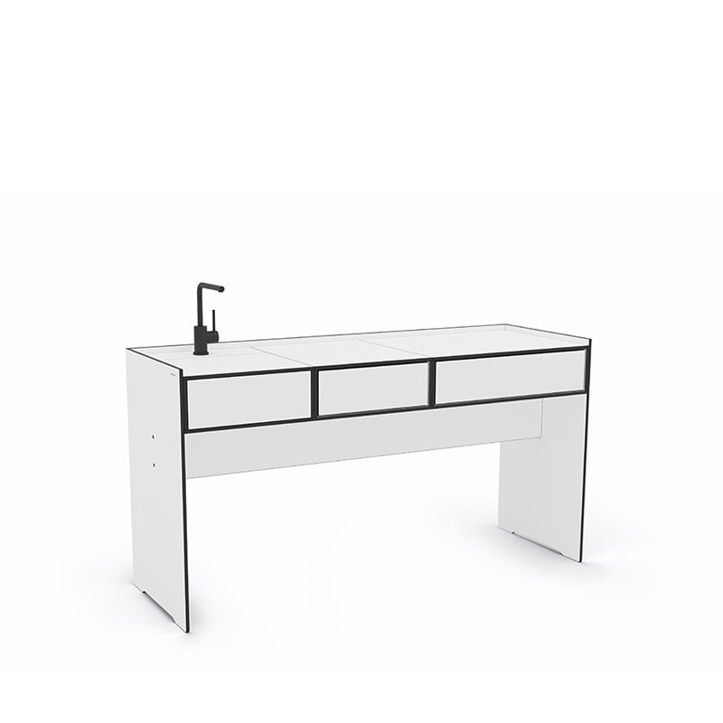 Gestell & Tischplatte aus wetterbeständigem HPL mit schwarzen Kanten
