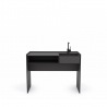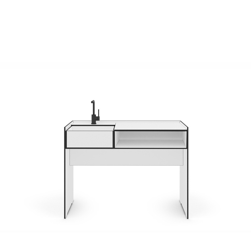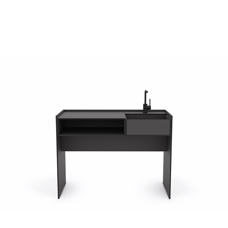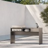 Gestell & Tischplatte aus wetterbeständigem HPL mit schwarzen Kanten